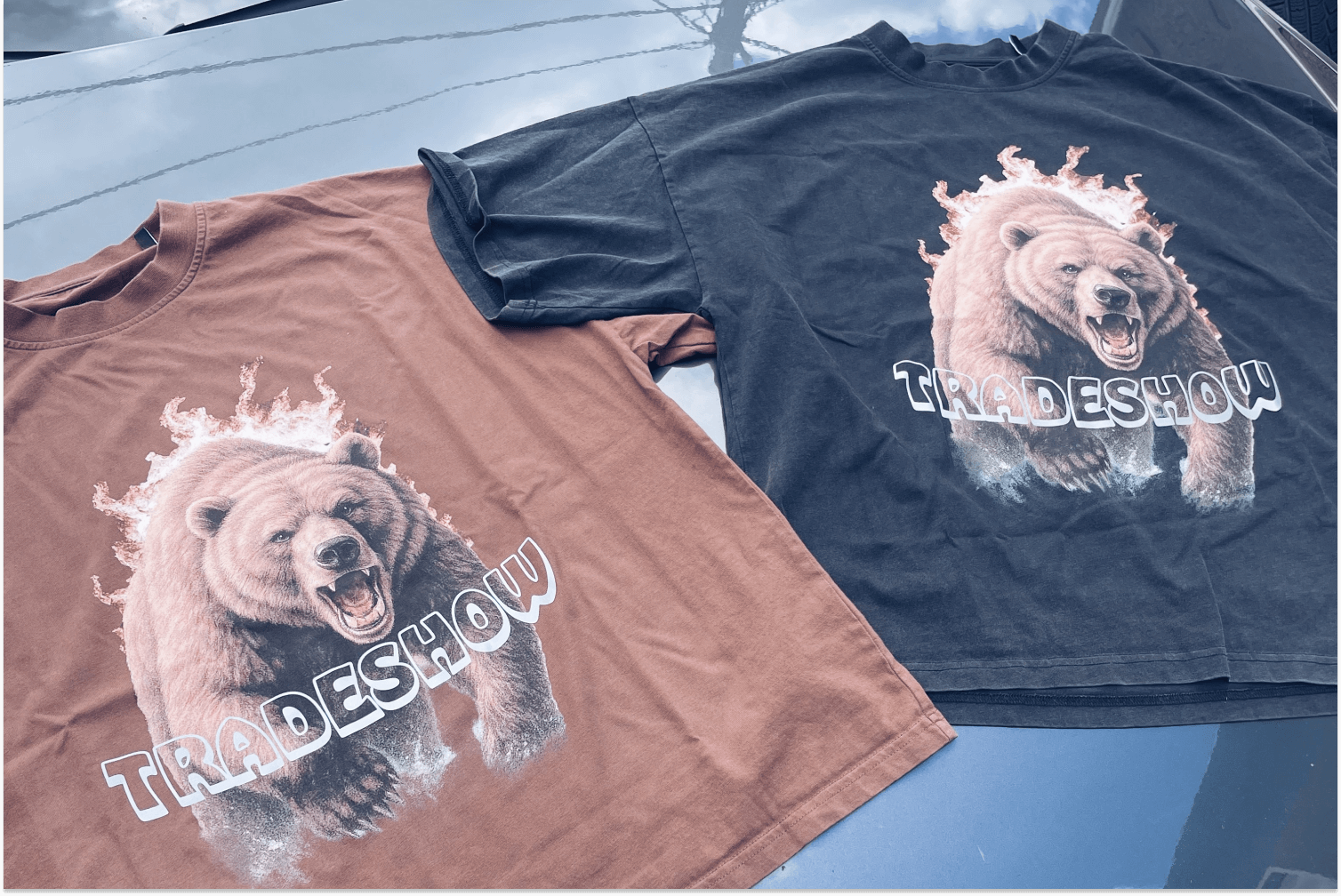 Při mém letošním druhém pokusu zdolat tuto trasu vzniknul i lookbook ke kolekci, která jde nyní do prodeje. Obsahuje trička s vintagem motivem běsnícího medvěda, kterého jsem naštěstí už opět nepotkal. Přední nápis TRADESHOW a kompletní motiv na zádech, který připomíná škrábance od medvěda, je udělaný reflexním printem, výrazně viditelným hlavně za tmy. Trička s gramáží 240 gsm a washed zakončením máme ve dvou barvách - vintage brown a vintage black a také ve dvou variantách - regular a ve verzi s odpáranými rukávy. Obě jsou skvělé jak na běhání, tak jako bold piece tvého každodenního outfitu.